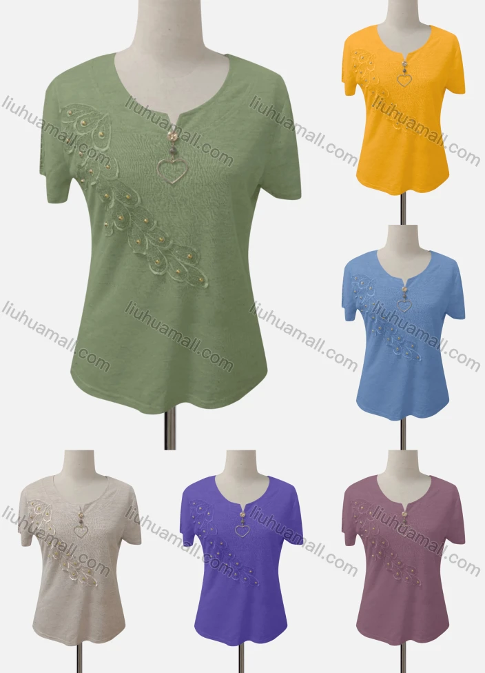 Wholesale Women's Casual Notched Neck Appliques Beaded Blouse