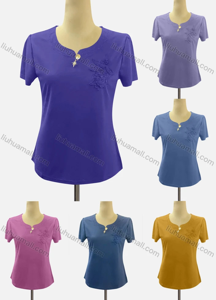 Wholesale Women's Casual Notched Neck Button Decor Appliques Knit Blouse