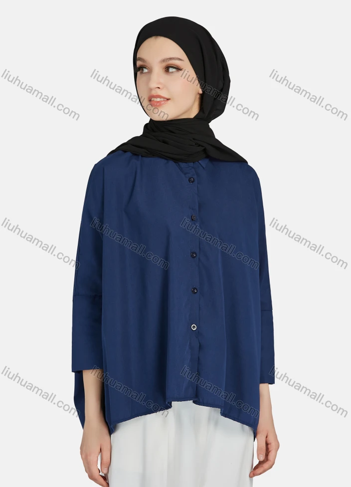 Wholesale Women's Casual Plain Collared 3/4 Sleeve Shirt 1341#