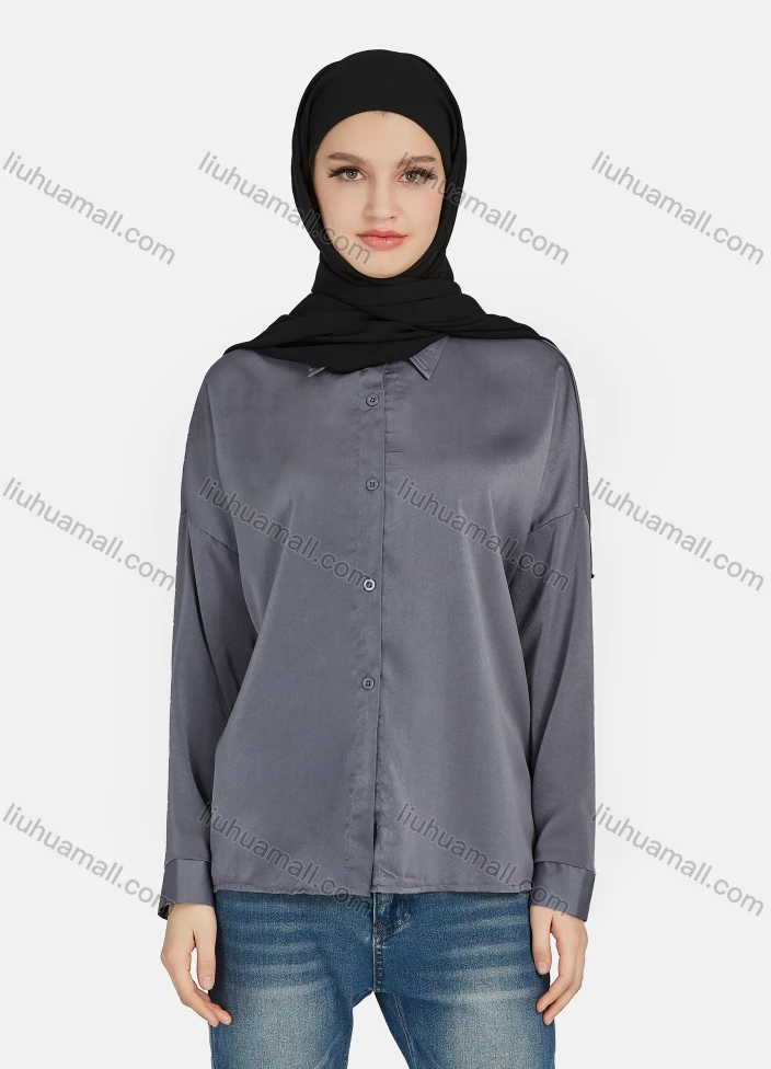Wholesale Women's Casual Plain Collared Long Sleeve Shirt 1169#