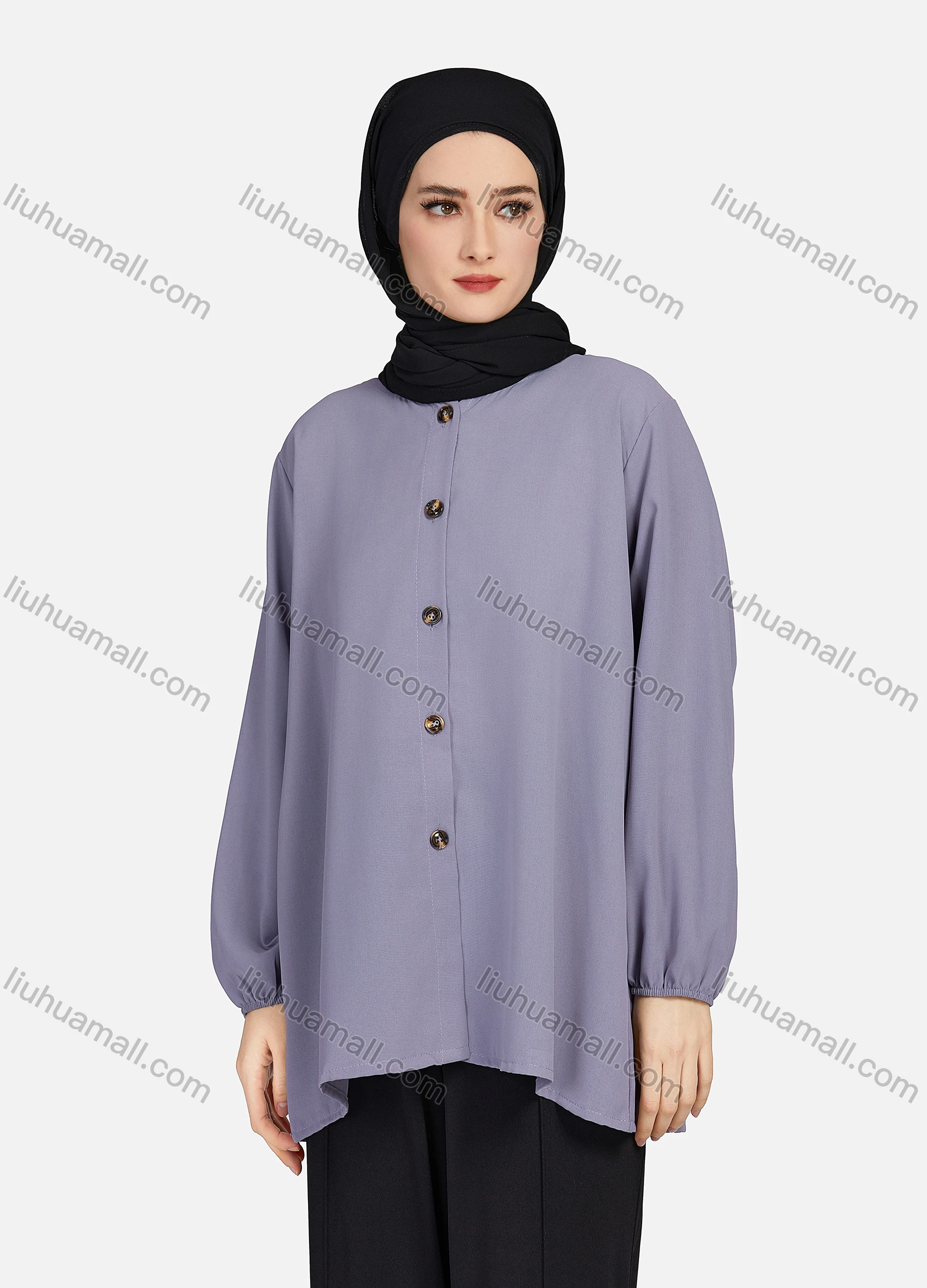 Wholesale Women's Casual Plain Crew Neck Long Sleeve High Low Hem Button Down Tunic 1401#