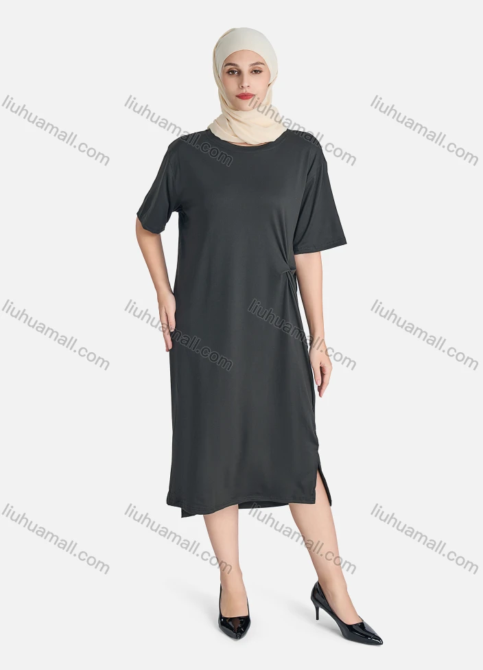 Wholesale Women's Casual Plain Crew Neck Split Side Dress Without Hijab