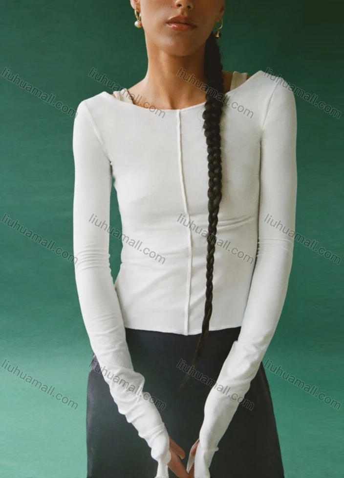 Wholesale Women's Casual Plain Cut Out Long Sleeve Blouse T0A3696G#