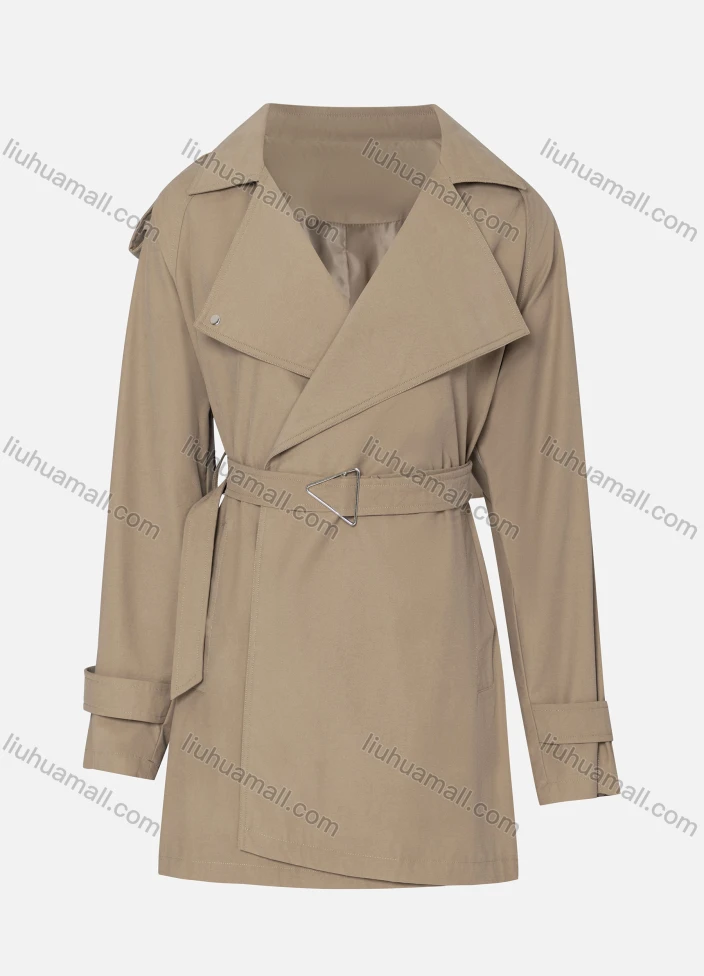 Wholesale Women's Casual Plain Lapel Long Sleeve Wrap With Belt