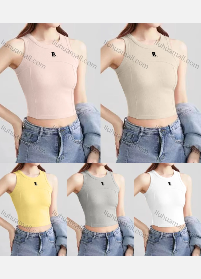 Wholesale Women's Casual Plain Letter Crew Neck Crop Tank Top B581#
