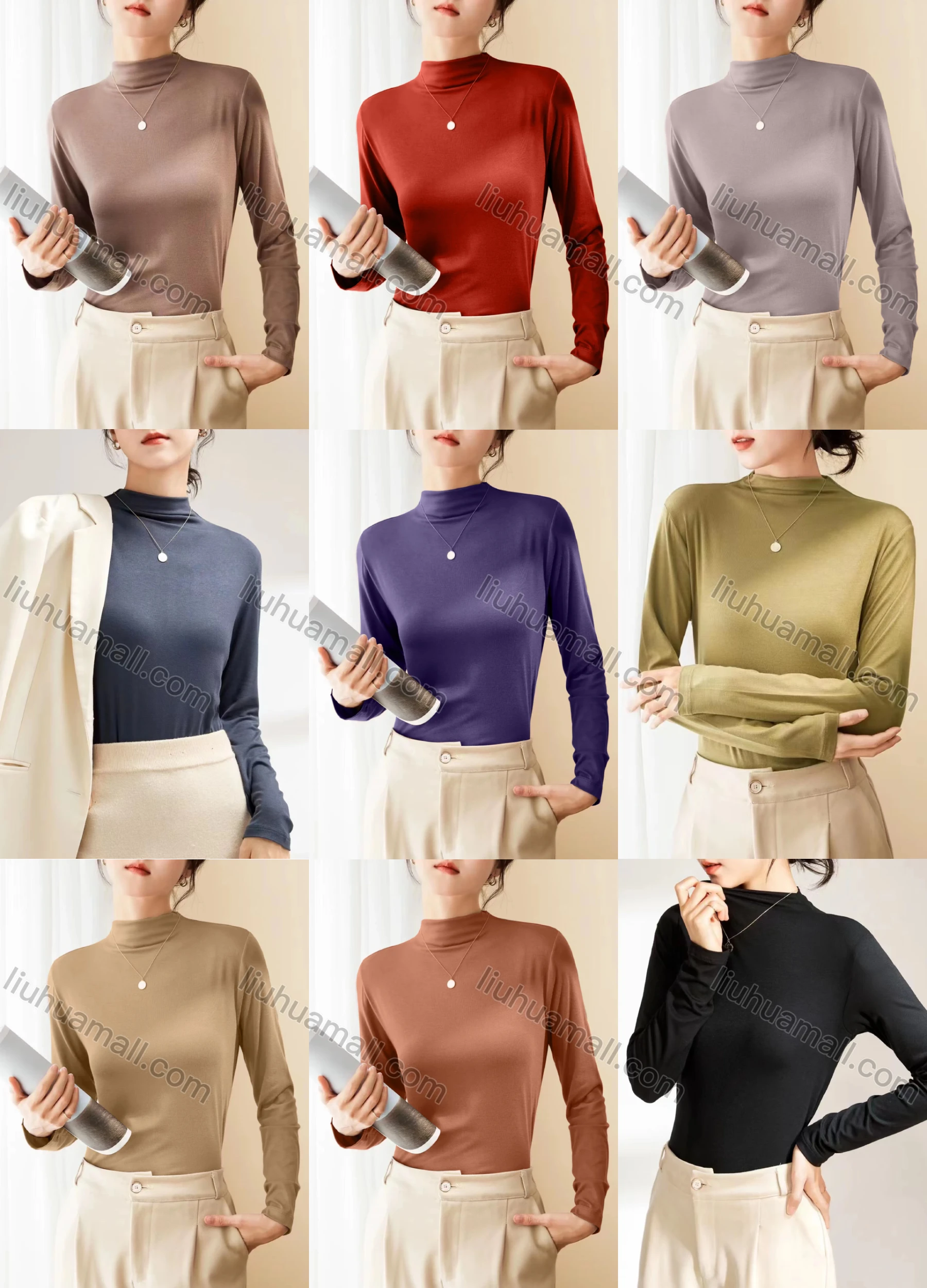Wholesale Women's Casual Plain Mock Neck Long Sleeve Top 205#