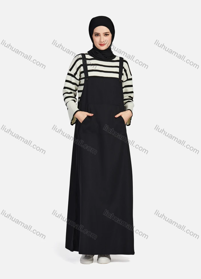 Wholesale Women's Casual Plain Square Neck Kangaroo Pocket Split Side Maxi Pinafore Dress 1430#