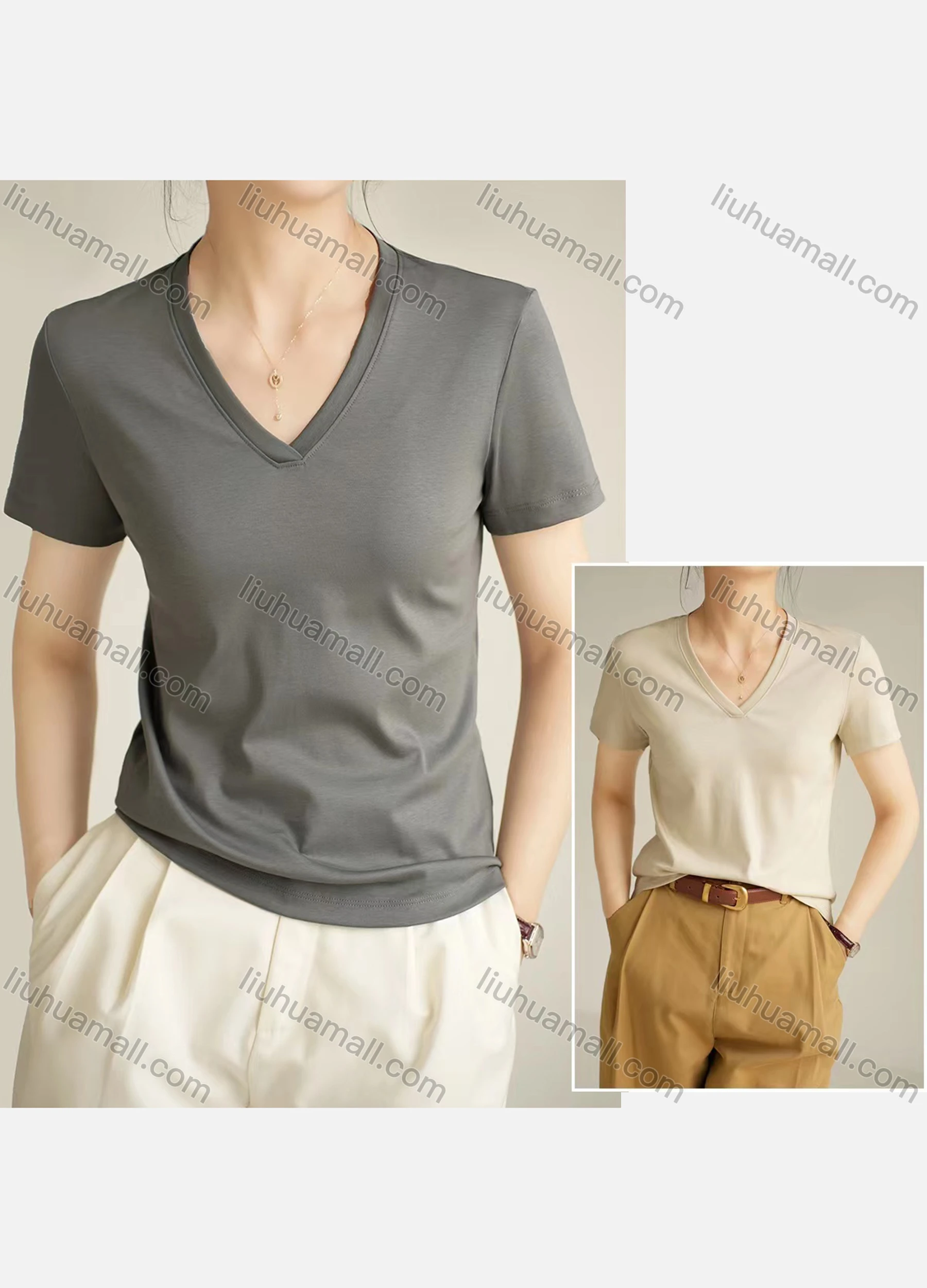 Wholesale Women's Casual Plain V Neck Knit Tee