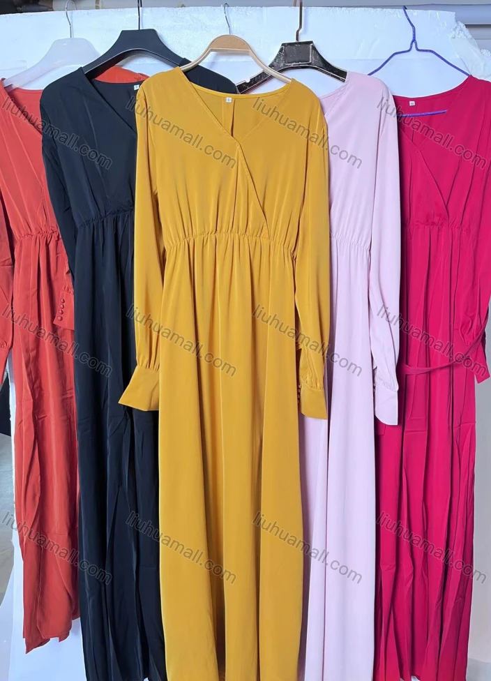Wholesale Women's Casual Plain V Neck Long Sleeve Peplum Dress TB282961#