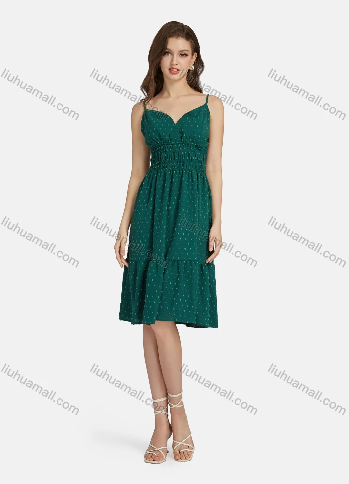 Wholesale Women's Casual Polka Dot Print Peplum Shirred Layered Hem Cami Dress 9029#