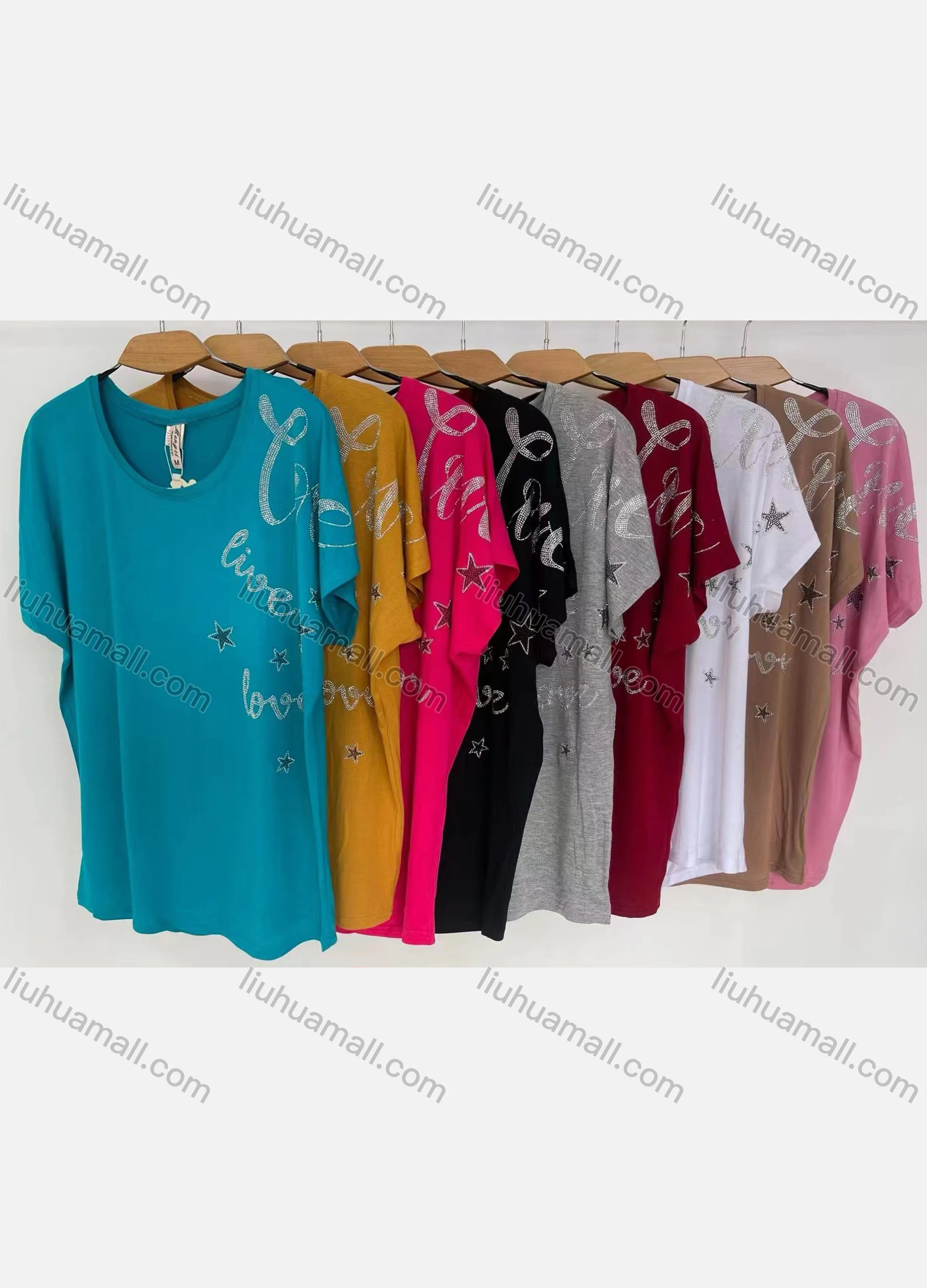 Wholesale Women's Casual Rhinestone Scoop Neck Short Sleeve Blouse