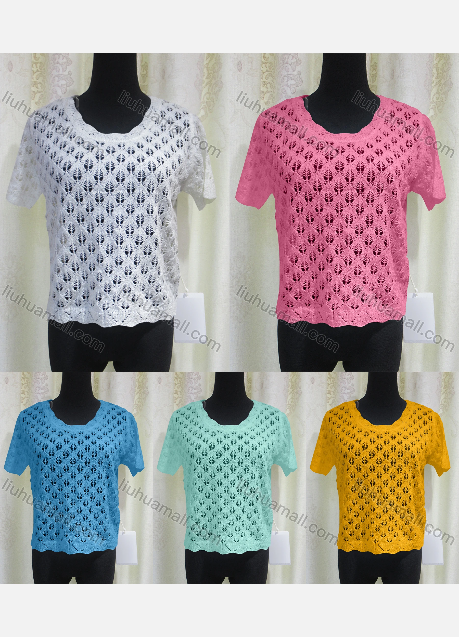 Wholesale Women's Casual Round Neck Hollow Out Plain Knit Top