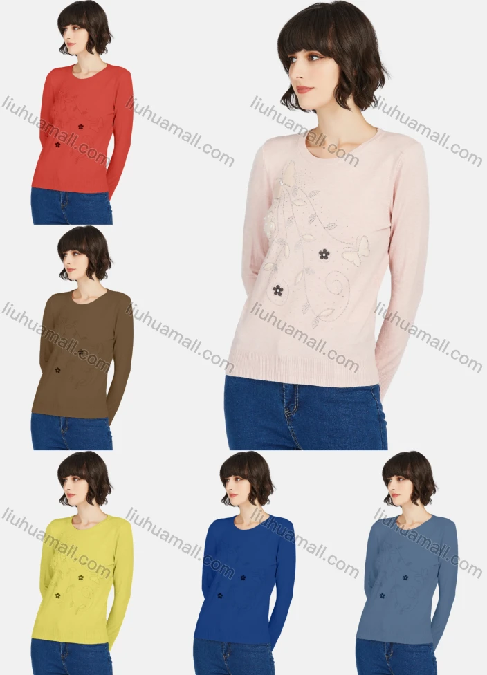 Wholesale Women's Casual Round Neck Long Sleeve Rhinestone Plain Knit Sweater