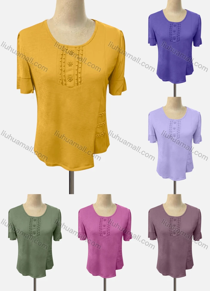 Wholesale Women's Casual Scoop Neck Short Sleeve Beaded Blouse