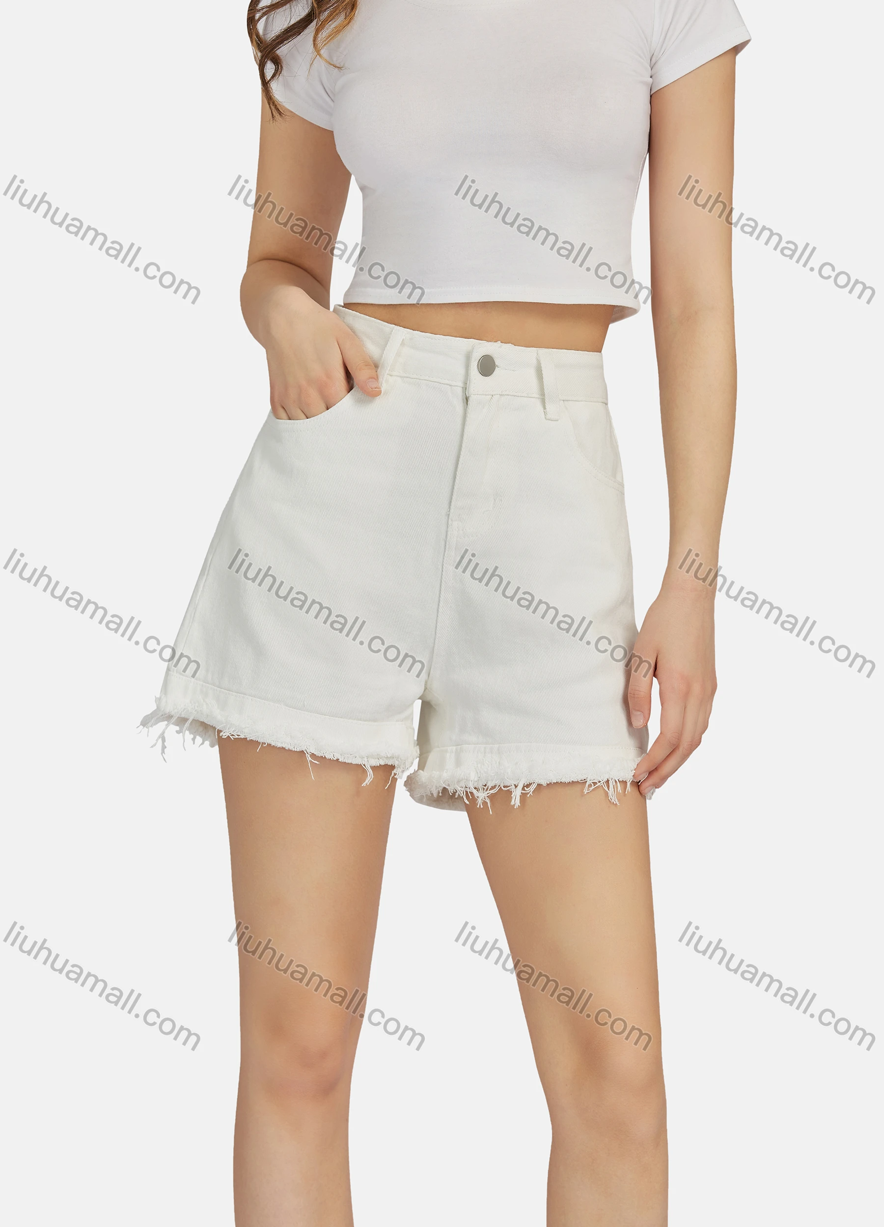 Wholesale Women's Casual Slant Pockets Frayed Raw Hem 5'' Inseam Shorts DL-23101#