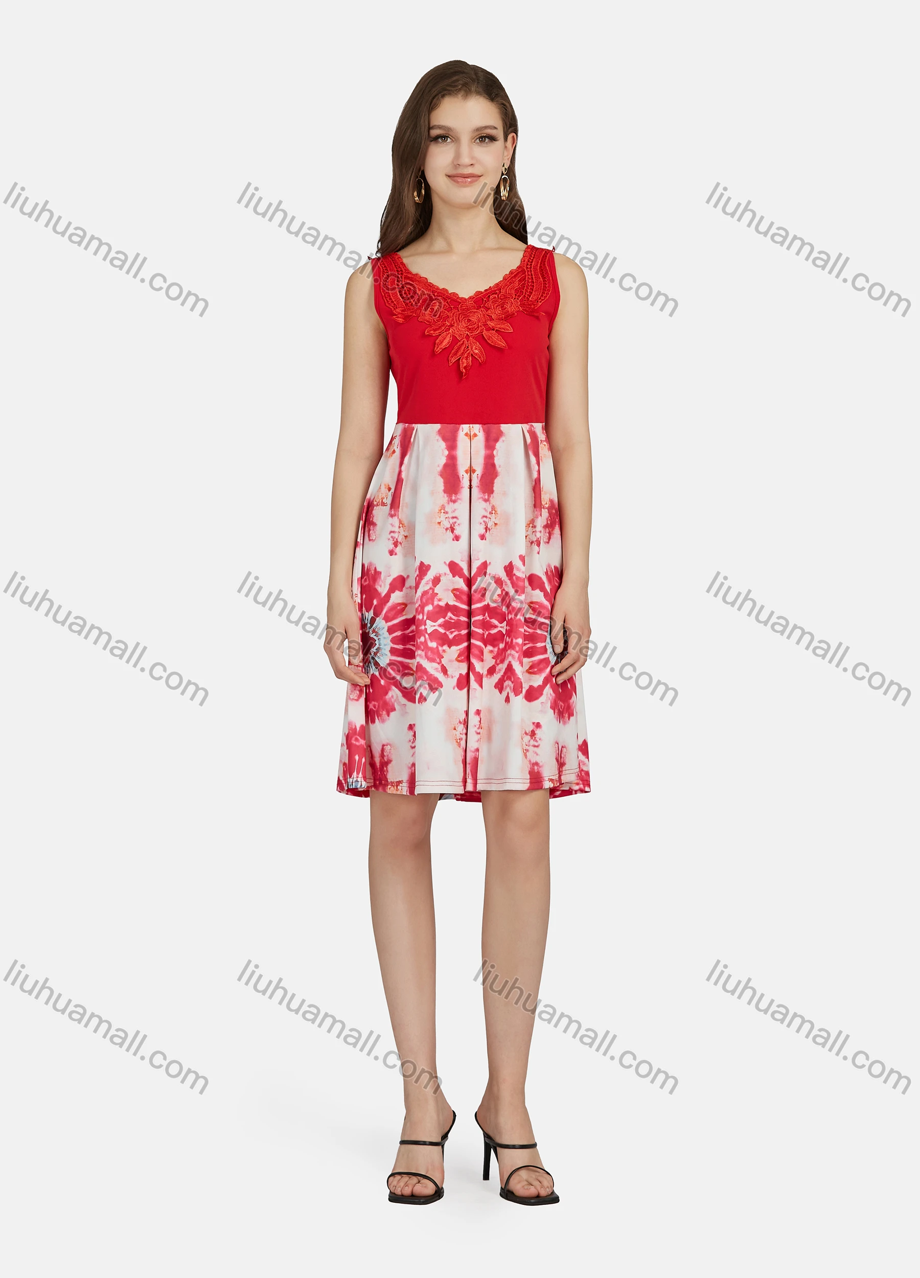 Wholesale Women's Casual Sleeveless Tie Dye Splicing Appliques Tank Dress 28008#