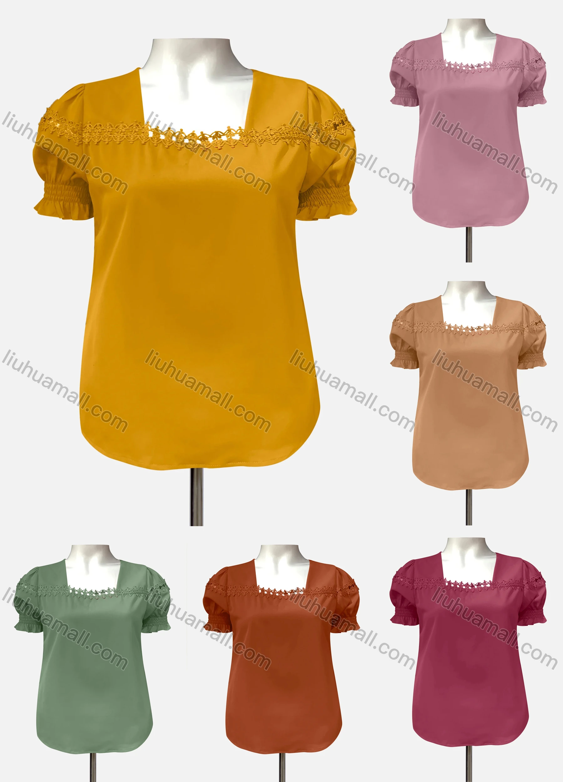 Wholesale Women's Casual Square Neck Short Sleeve Appliques Blouse