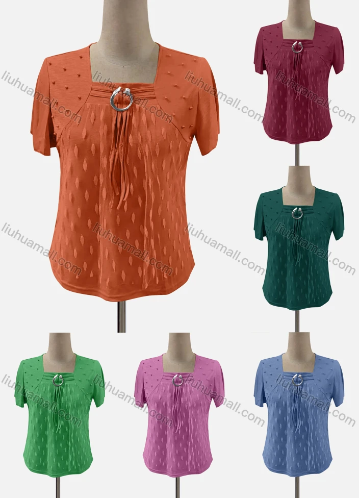 Wholesale Women's Casual Square Neck Short Sleeve Lace Blouse