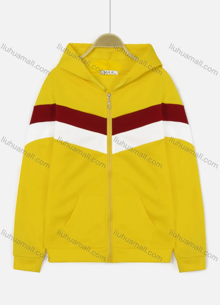 Wholesale Women's Casual Striped Colorblock Long Sleeve Zipper Pockets Hoodie