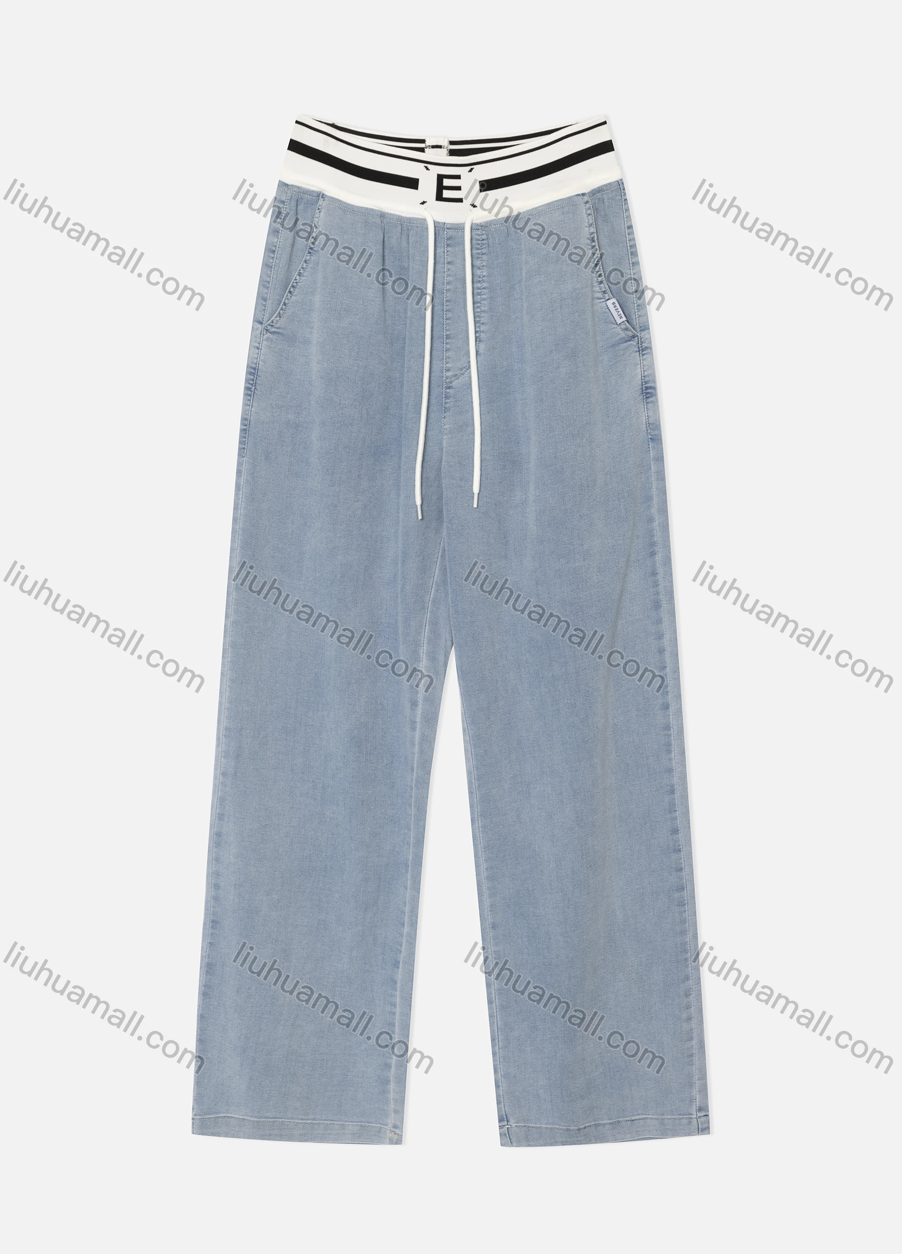 Wholesale Women's Casual Striped Elastic Waist Drawstring Ankle Length Wide Leg Jeans 9616#