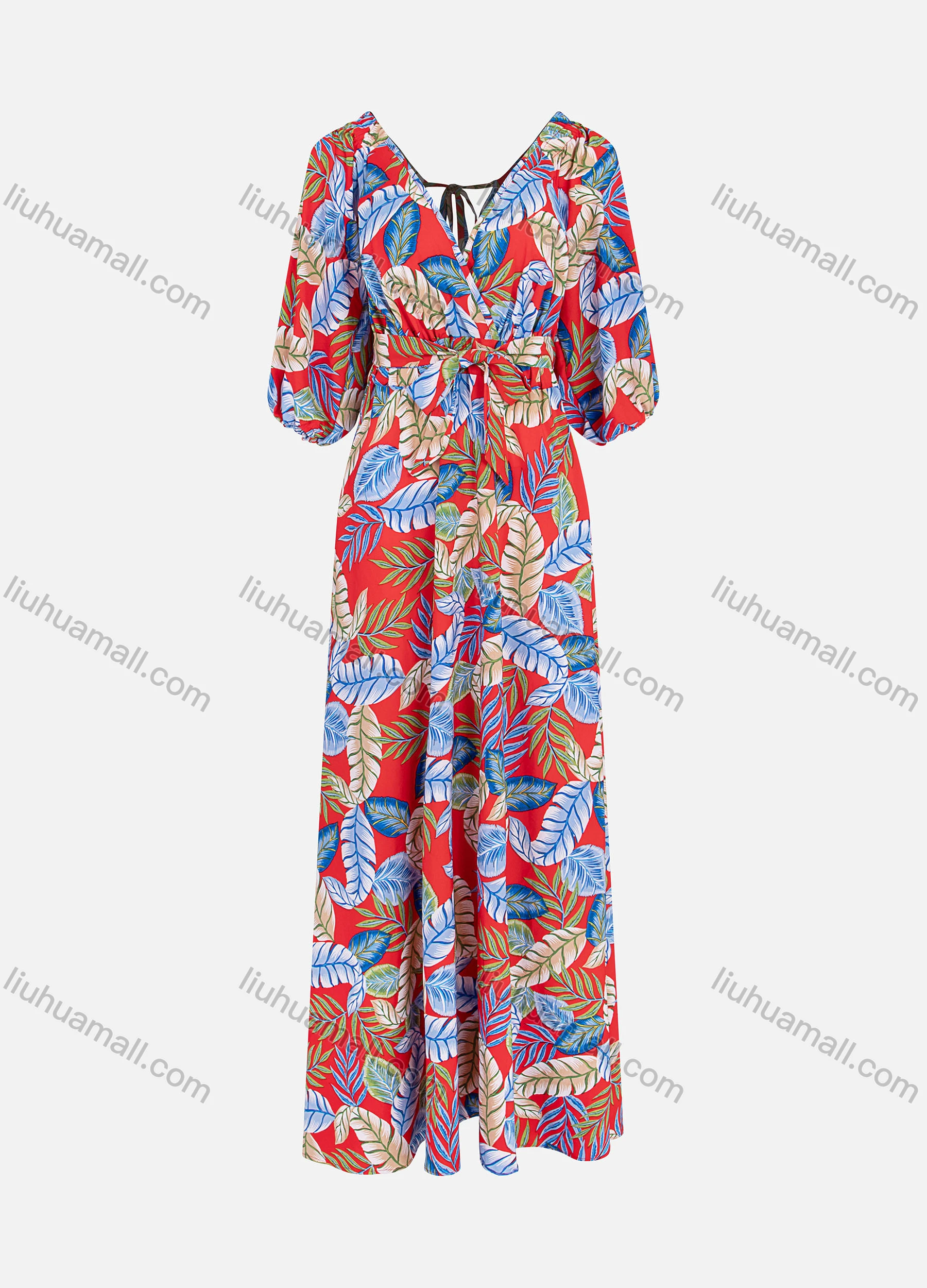 Wholesale Women's Casual V Neck 3/4 Sleeve Lace Up Back Maxi Dress