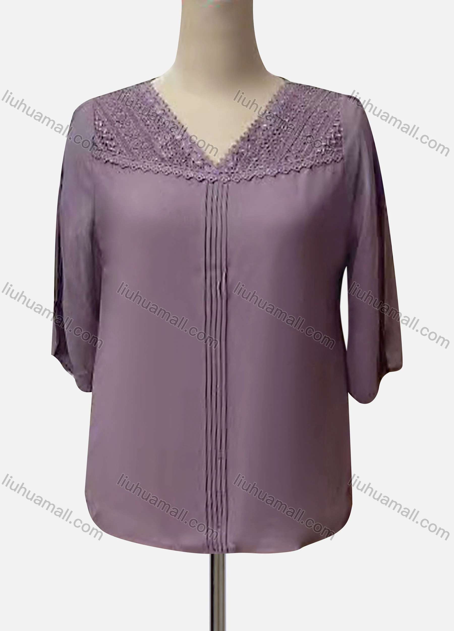 Wholesale Women's Casual V Neck Short Sleeve Appliques Blouse