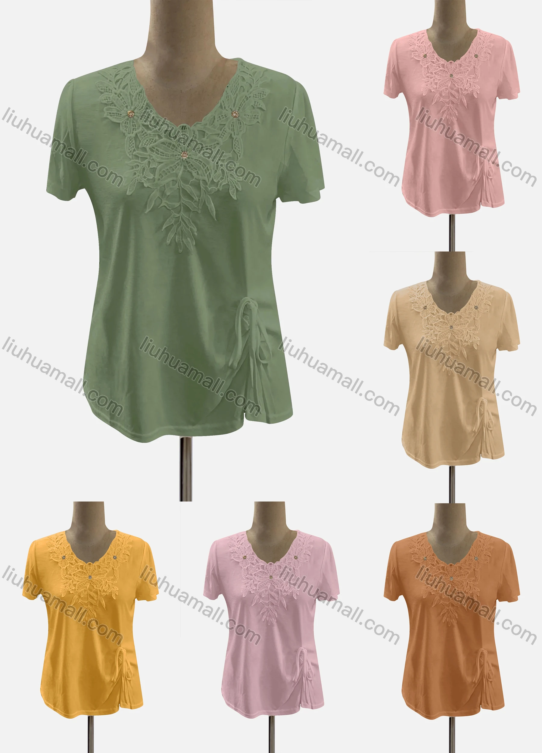 Wholesale Women's Casual V Neck Short Sleeve Appliques Blouse