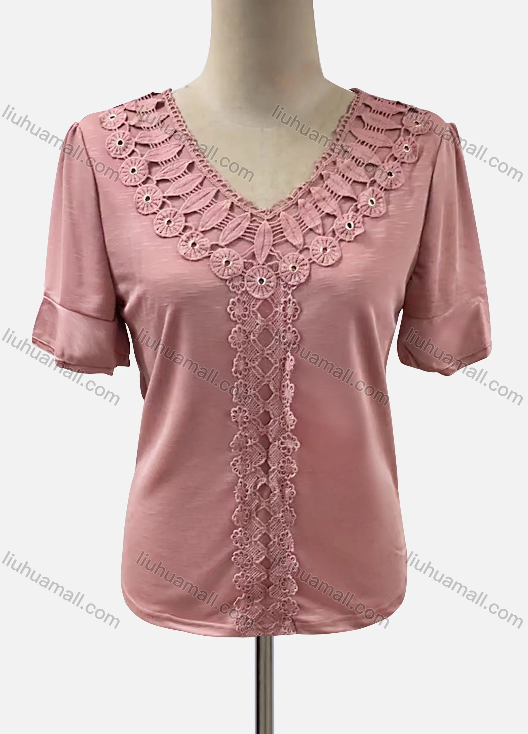 Wholesale Women's Casual V Neck Short Sleeve Appliques Knit Blouse