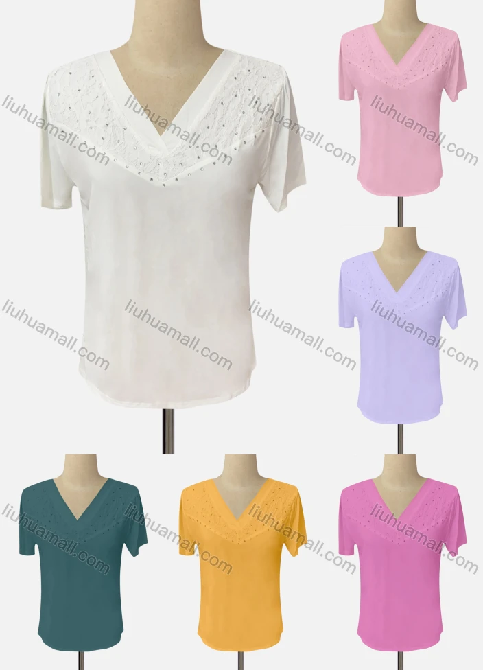 Wholesale Women's Casual V Neck Short Sleeve Rhinestone Blouse