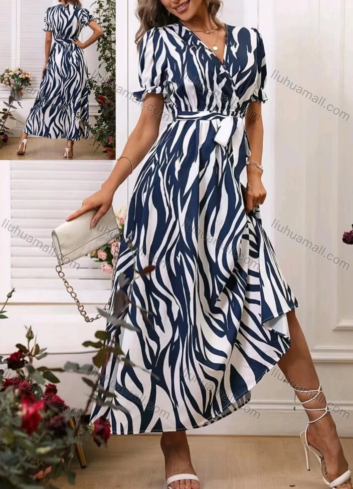 Wholesale Women's Casual Wrap V Neck Short Sleeve Maxi Dress With Belt