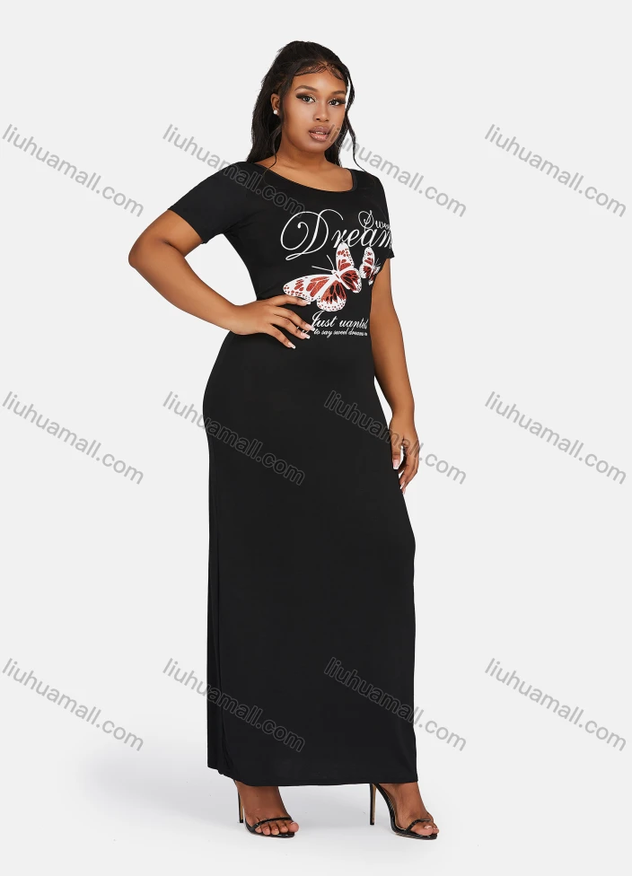 Wholesale Women's Causal Butterfly Letter Print Short Sleeve Maxi Dress