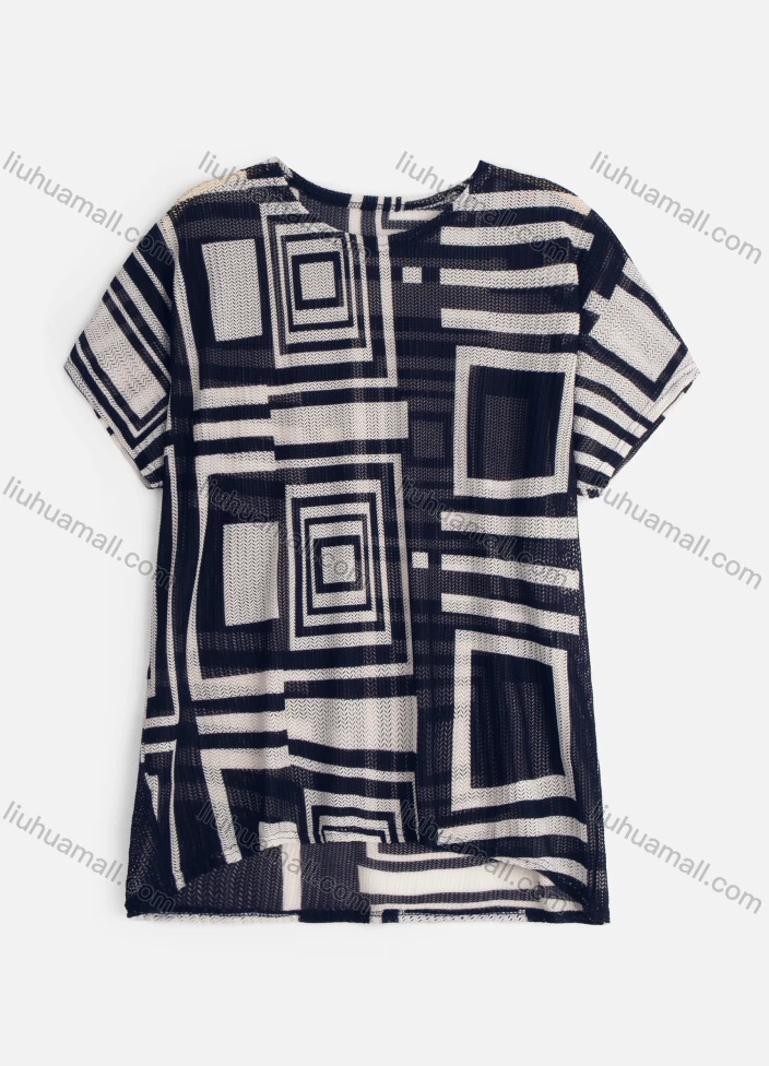 Wholesale Women's Causal Geo Print Round Neck Short Sleeve Knit Top