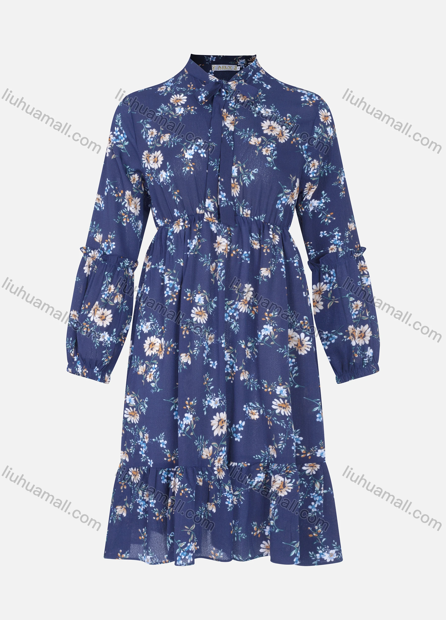 Wholesale Women's Causal Tie Neck Long Sleeve Floral Print Viscose Midi Dress