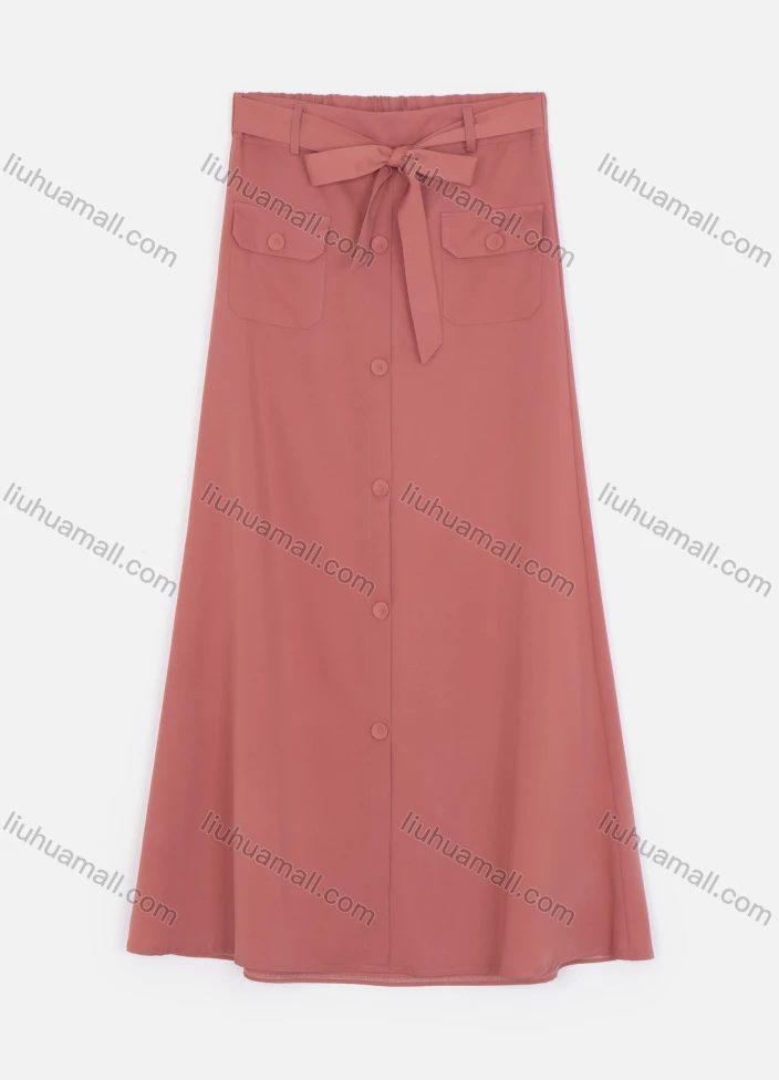 Wholesale Women's Elastic Waist Lace Up Button Pocket Plain Maxi Skirts 2050-6529#