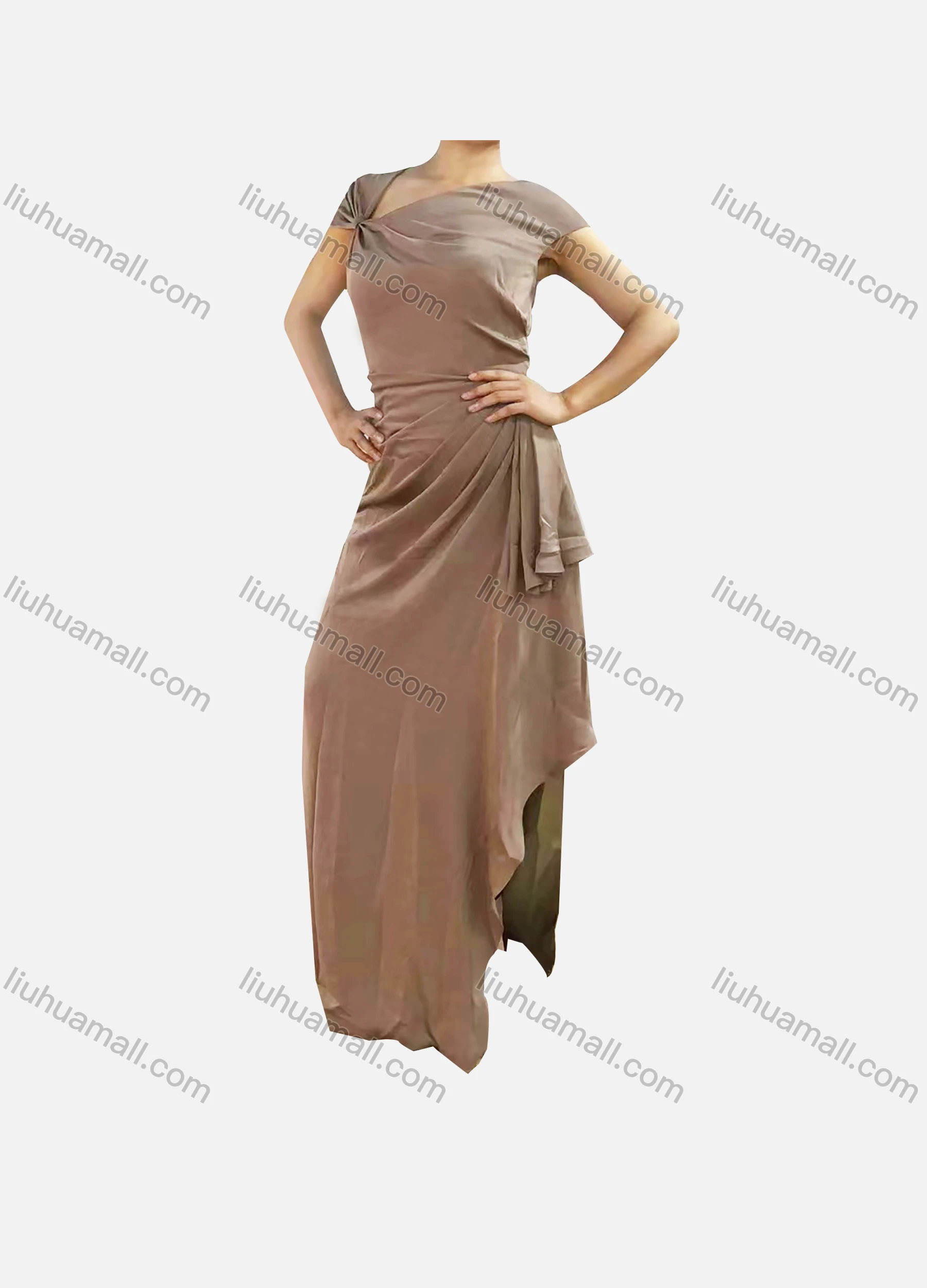 Wholesale Women's Elegant Plain Asymmetrical Neck Ruched High Low Hem Dress