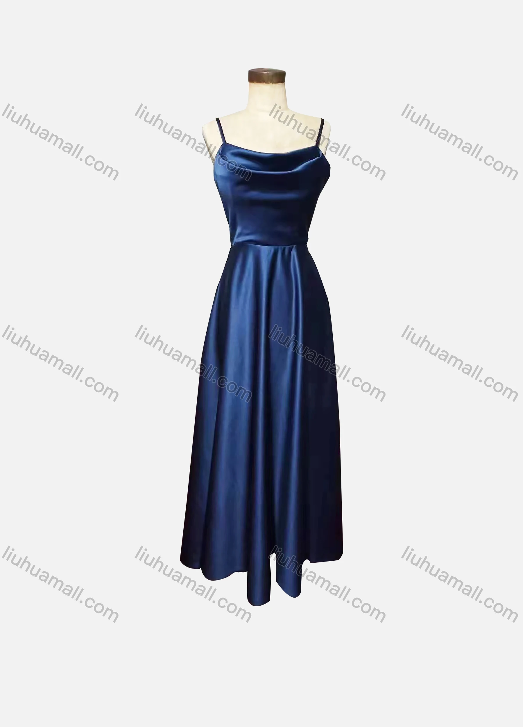 Wholesale Women's Elegant Plain Spaghetti Strap Ruched Maxi Evening Dress
