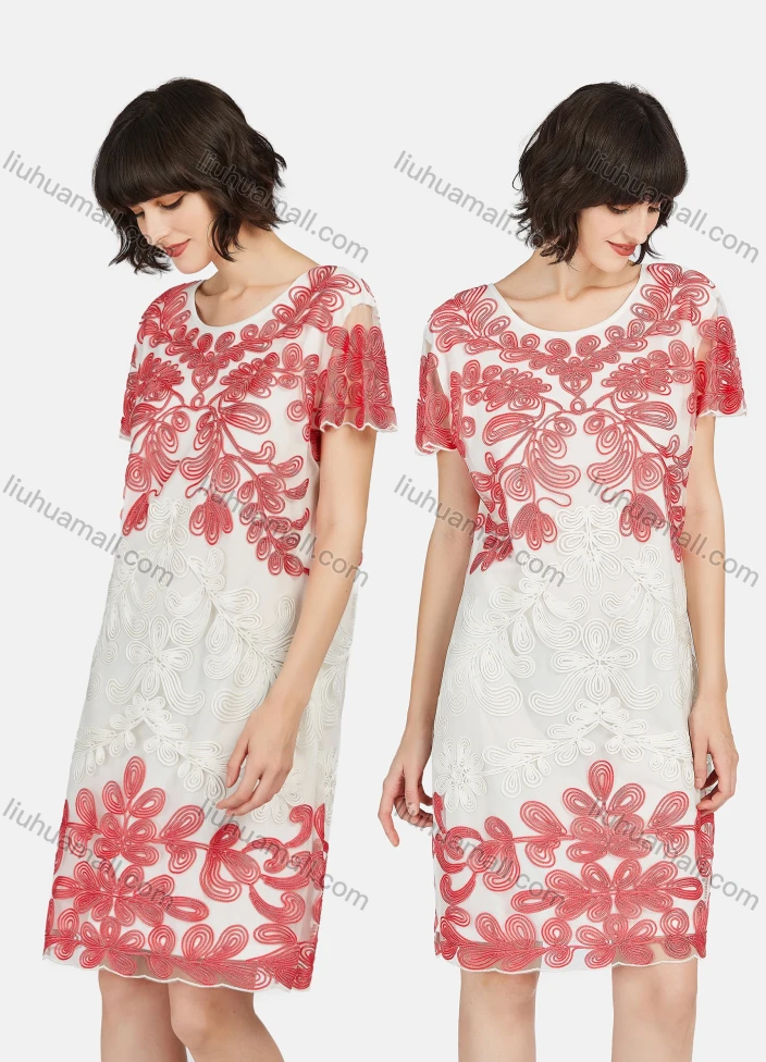 Wholesale Women's Elegant Short Sleeve Embroidered Lace Knee Length Dress