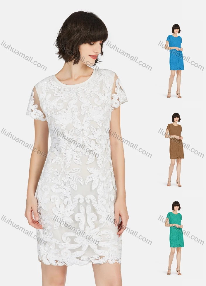 Wholesale Women's Elegant Short Sleeve Embroidery Lace Short Dress