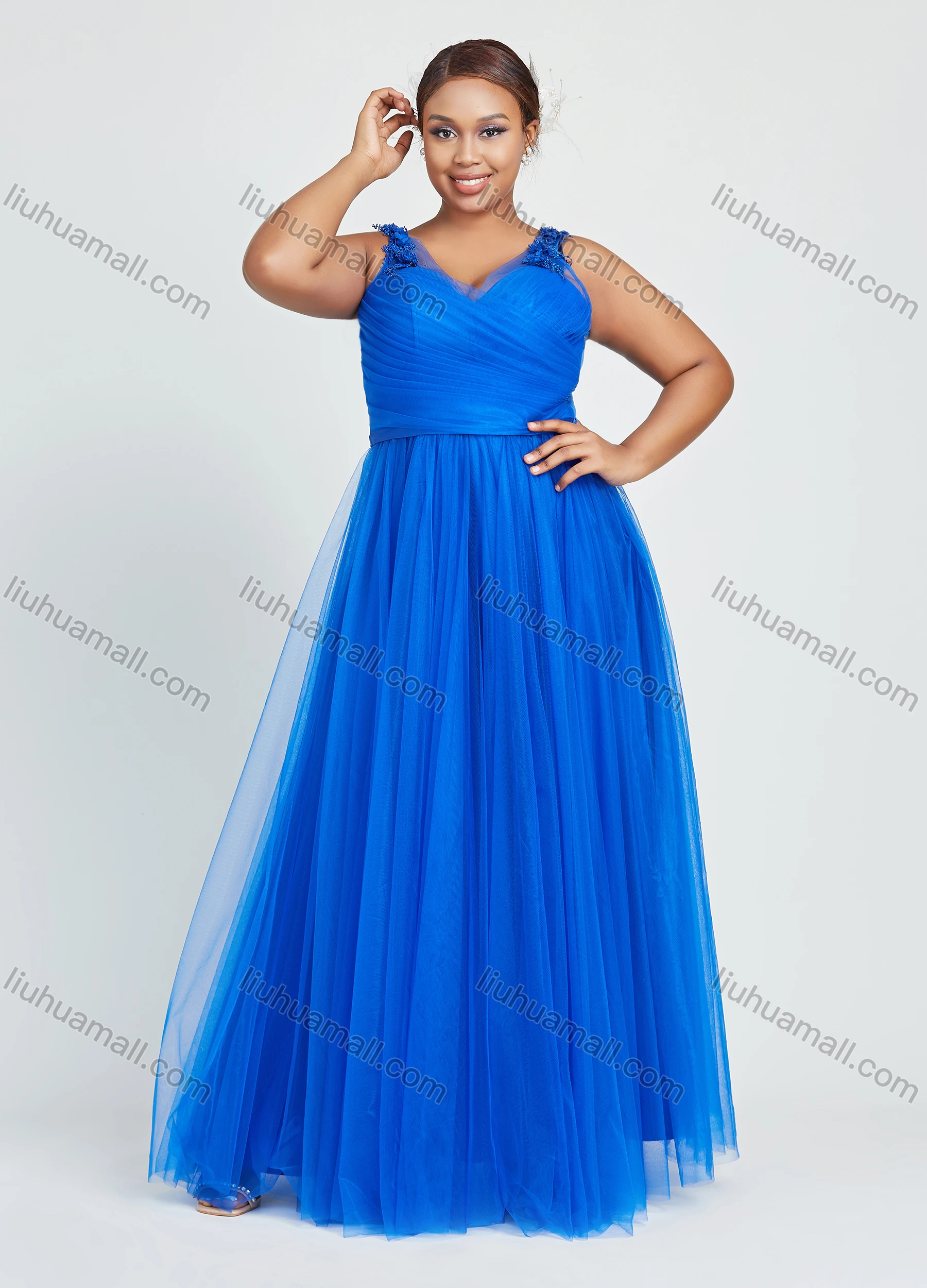 Wholesale Women's Elegant Sleeveless V Neck Mesh Appliques Evening Dress