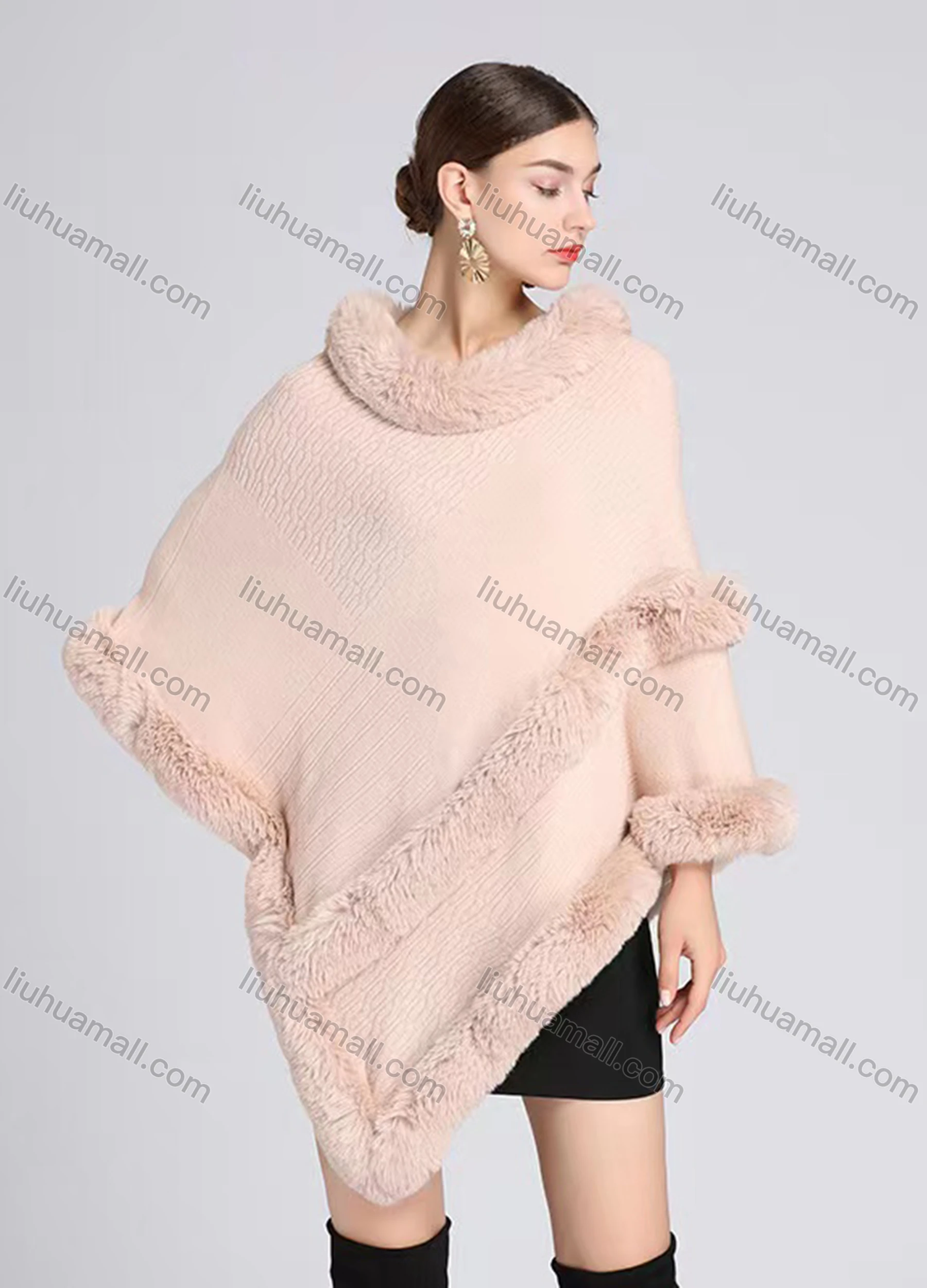 Wholesale Women's Fashion Causal Fuzzy Collar Thermal Floral Cape