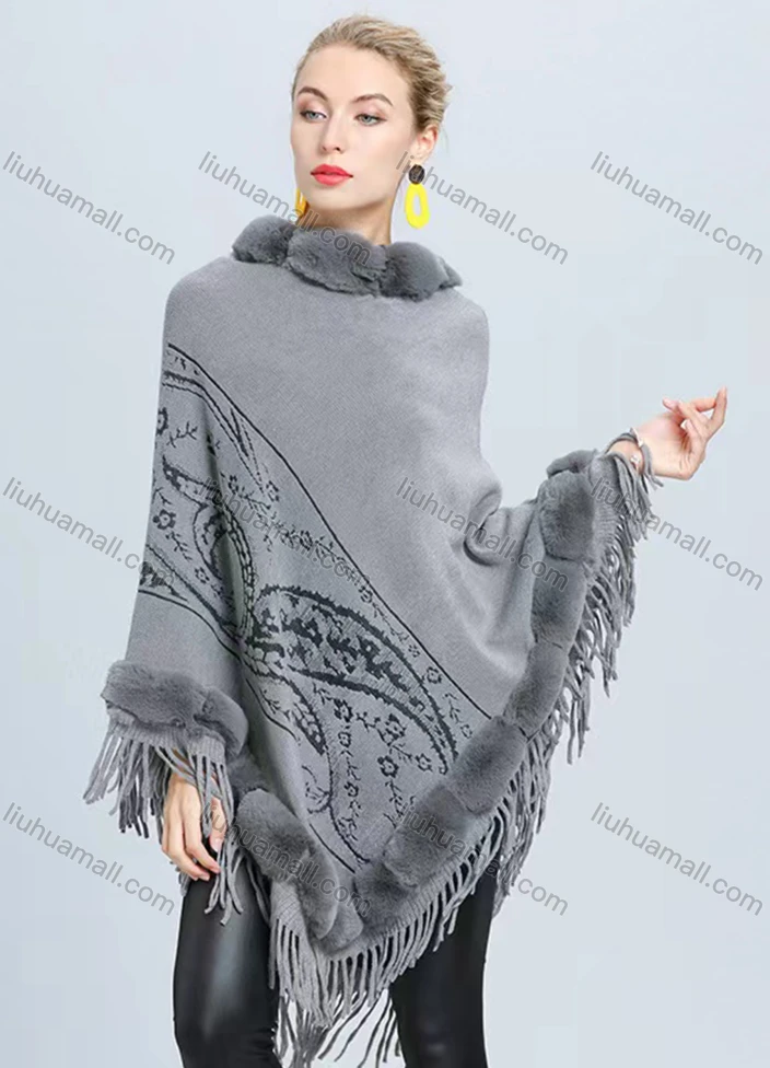 Wholesale Women's Fashion Causal Fuzzy Collar Thermal Floral Tassel Cape