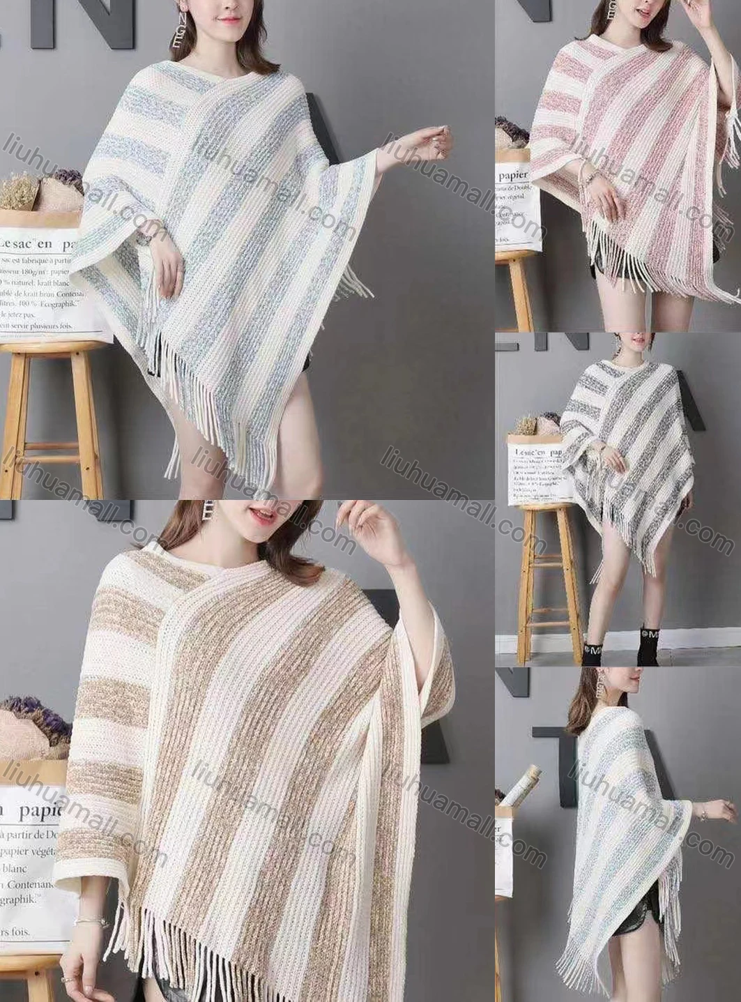 Wholesale Women's Fashion Causal V Neck Striped Tassel Cape