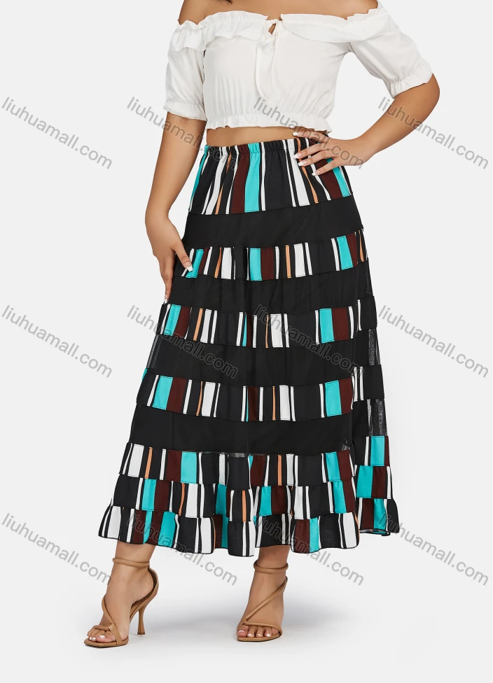 Wholesale Women's Fashion Elastic Waist Striped Pleated Maxi Skirt