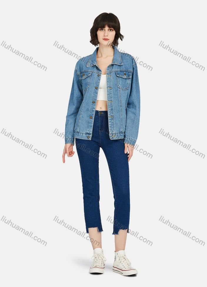 Wholesale Women's Fashion Lapel Button Down Flap Pockets Denim Jacket & Capris Pants Set