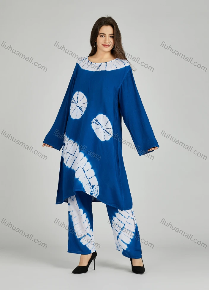 Wholesale Women's Folkloric African High Low Hem Long Sleeve Tie Dye Robe & Pants 2 Piece Sets ZRLK-101#