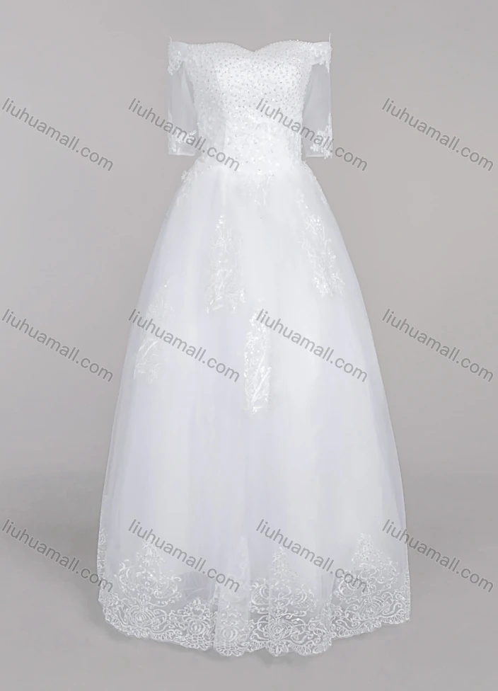 Wholesale Women's Glamorous Off Shoulder Sequin Embroidery Beaded Applique Lace Up Corset Bodice Classic Wedding Dress