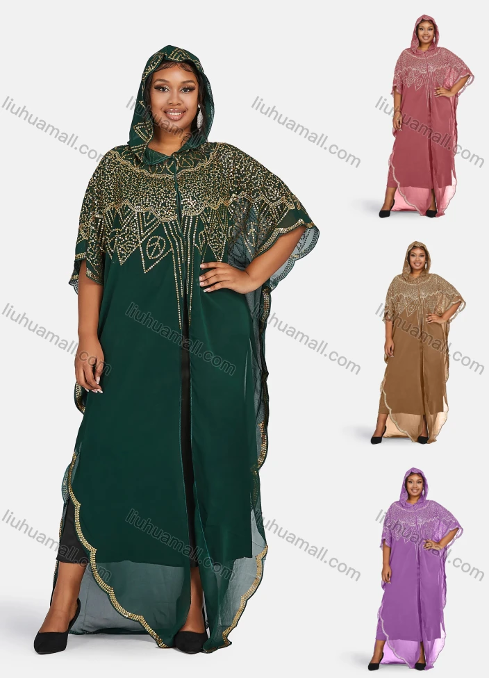 Wholesale Women's Islamic Muslim Vintage Glamorous Jellabiya Arabic Dubai Sequin Hooded Cover Up Cardigan