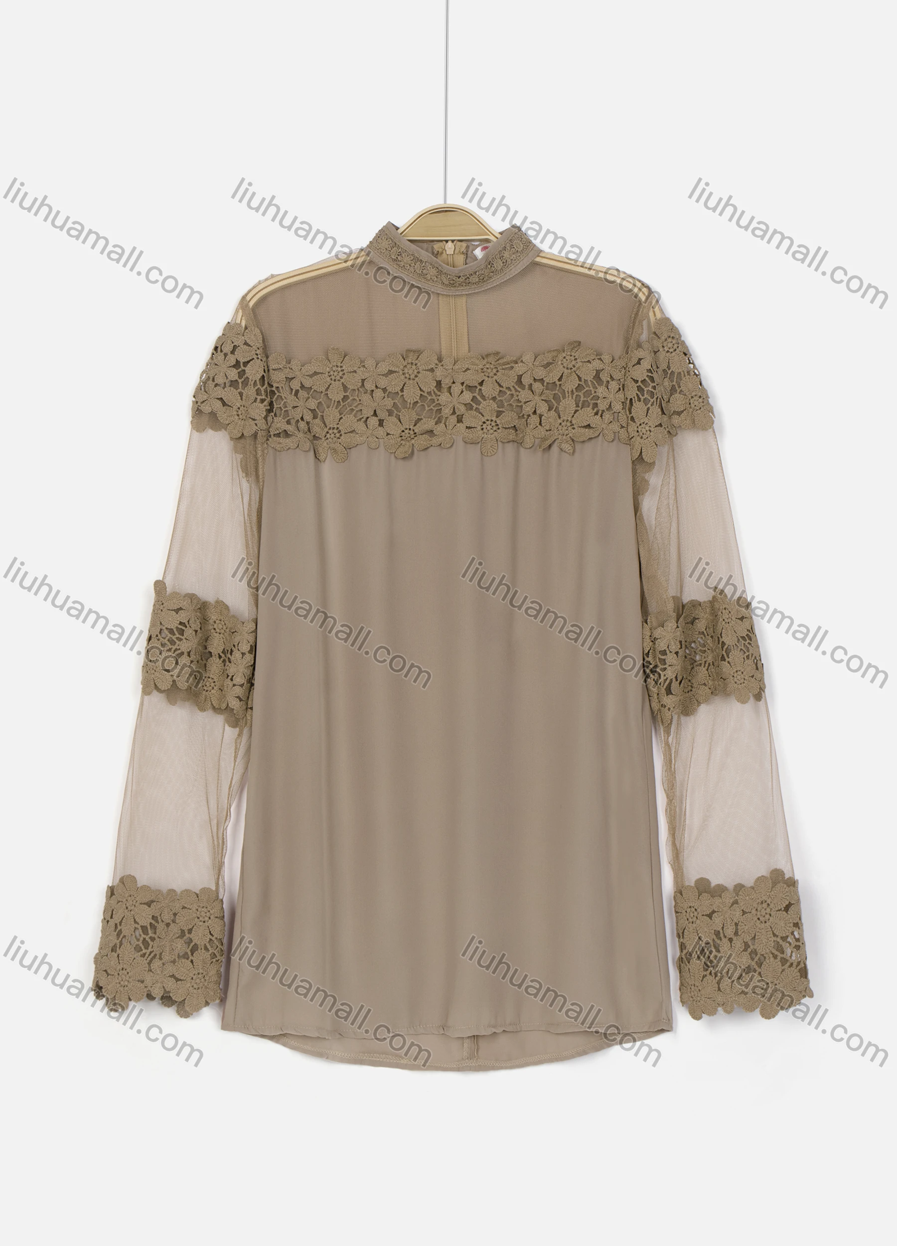 Wholesale Women's Mock Neck Zip Back Long Sleeve Applique Blouse
