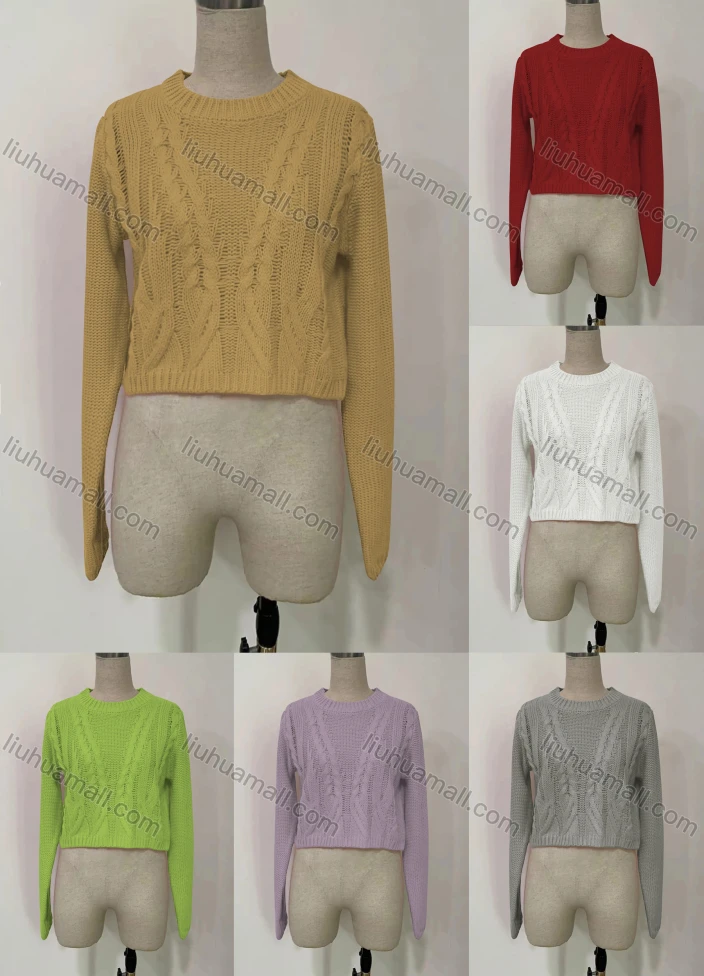 Wholesale Women's Round Neck Long Sleeve Solid Cable Knit Sweater