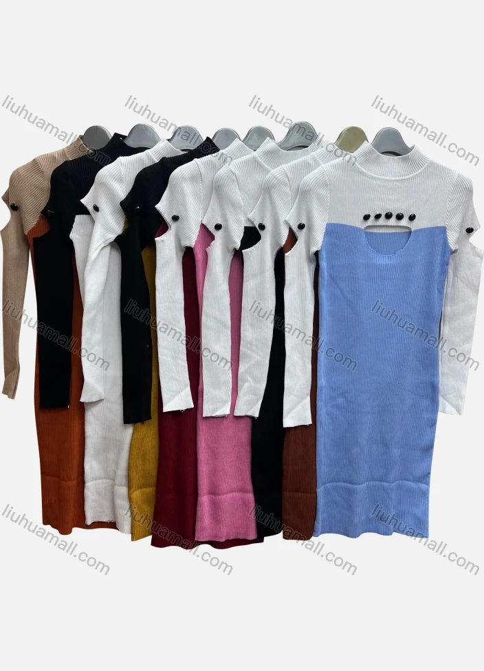 Wholesale Women's Sexy Bodycon Mock Neck Colorblock Cutout Button Decro Club Dress